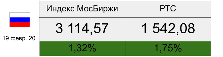 Рынок готов к реваншу19.02.2020Сессия 18 февраля на отечественном рынке завершились в минусе. Наибольший спад показали бумаги электроэнергетического и транспортного сектора. Объем торгов был на 21% ниже среднего за 30 дней и составил 57 354 млн руб. Лидерами... |
