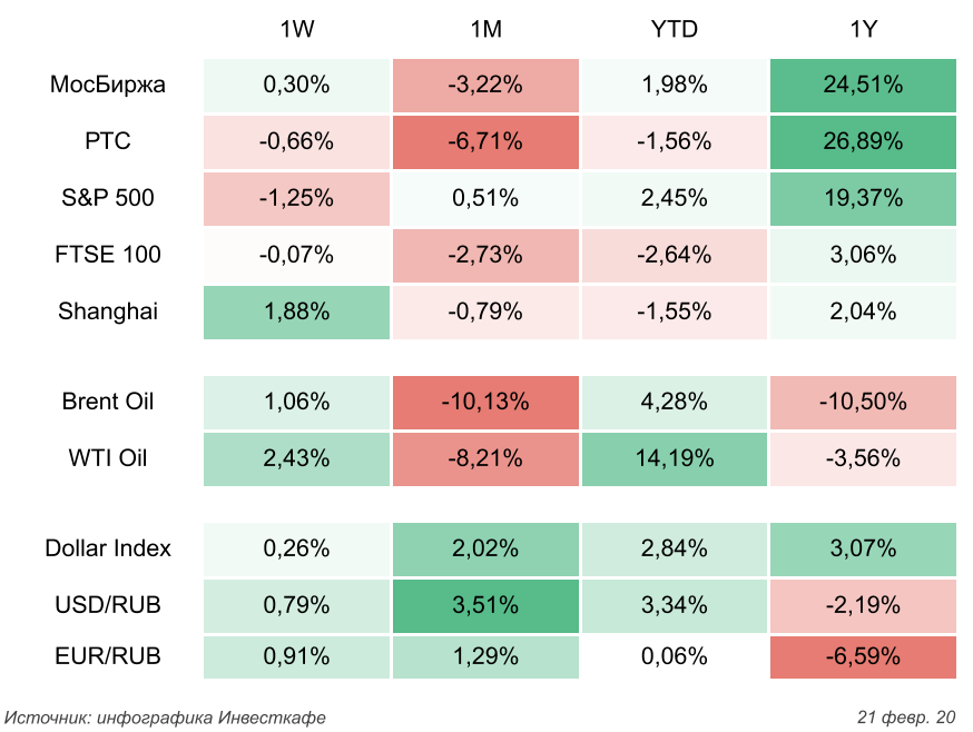 Рынок готов к погружению25.02.2020Сессия 21 февраля на отечественном рынке завершилась в минусе. Объем торгов был на 32% ниже среднего за 30 дней, он составил 47 794 млн руб. Лидерами роста стали Полюс (+3,75%), Polymetal (+3,74%) и ФСК ЕЭС (+2,73%). Список... |
