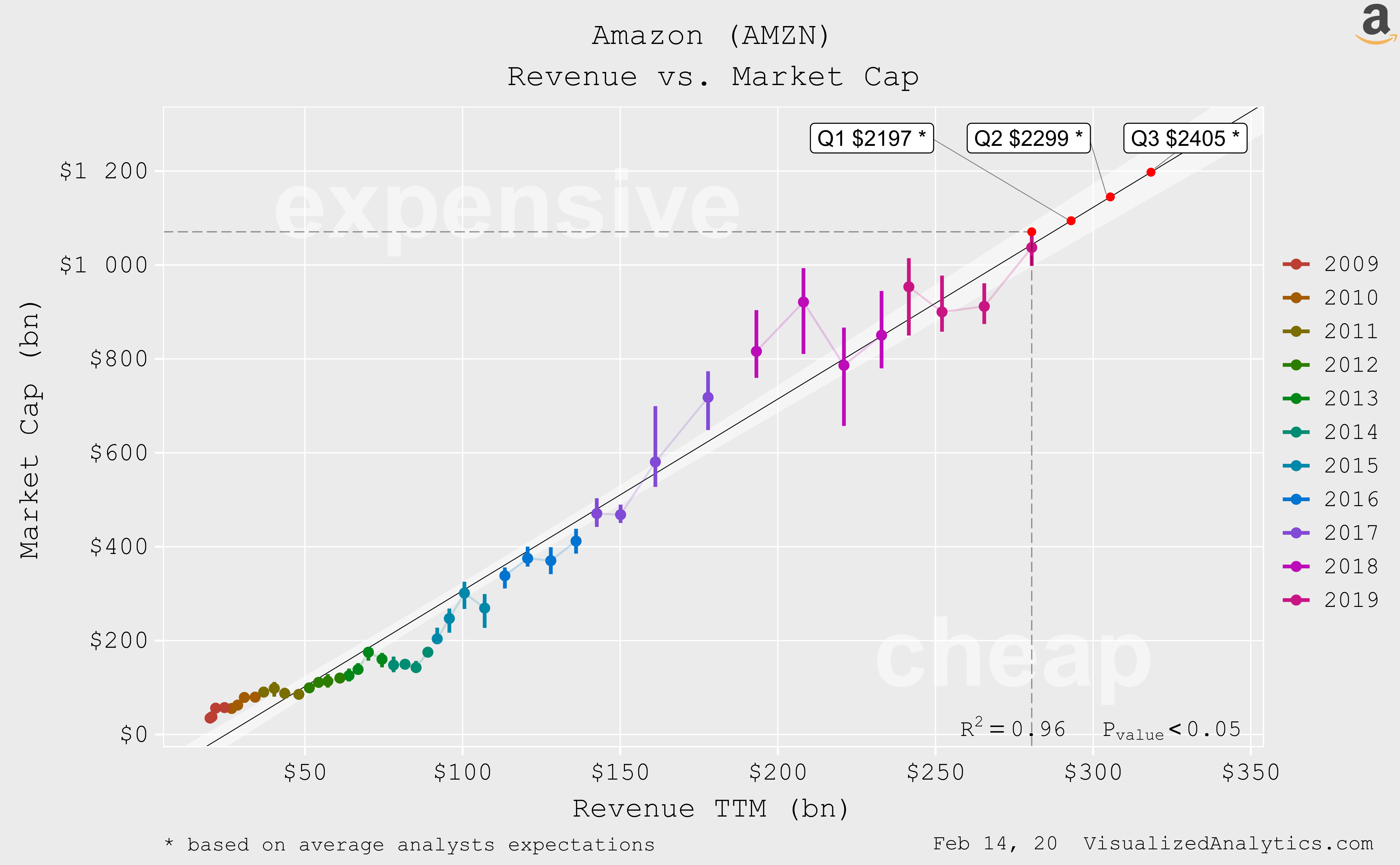 Amazon предлагает щедрый дисконт24.02.2020Публикация последней финансовой отчетности Amazon привела к взлету акций компании более чем на 7%. Причем, похоже, это лишь начало долгого восходящего тренда. Годовая выручка Amazon в четвертом квартале 2019-го составила $280,522 млрд (+20,45%... |