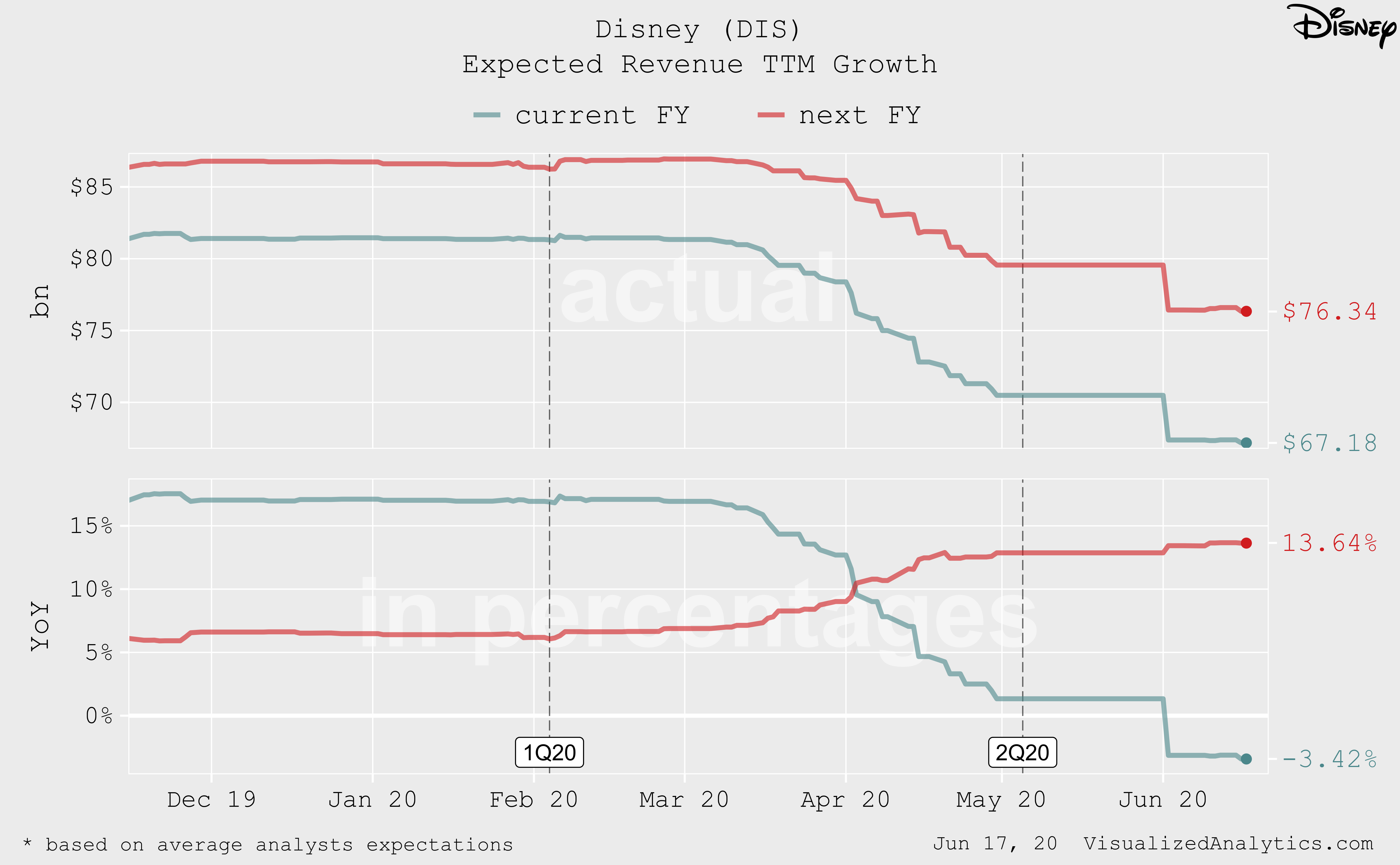 Disney подает ложные сигналы01.07.2020Акции Disney постепенно отходят от мартовского шока и уже находятся на уровне начала 2019 года. Но есть ряд факторов, которые заставляют всерьез прогнозировать, что капитализация компании еще не достигла дна в результате текущей коррекции.... |