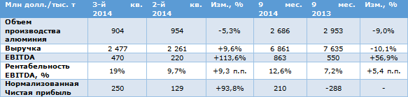 РУСАЛ выиграл от сокращения производства19.01.2015Объединенная компания РУСАЛ отчиталась по МСФО за 9 месяцев 2014 года. В целом финансовые результаты оказались лучше, чем за аналогичный период прошлого года. Объемы производства алюминия компании сократились на 9%, до 2 651 тыс. тонн, по... |