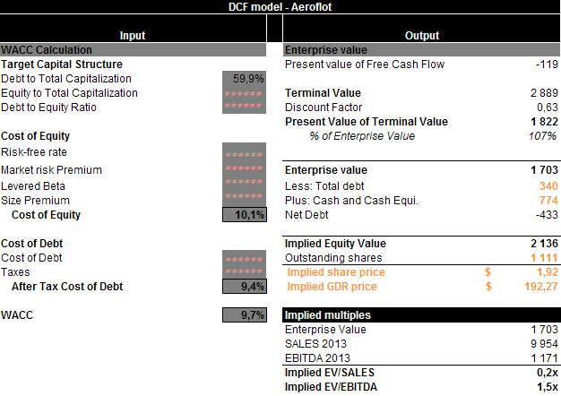 Я скорректировал расчетную стоимость ценных бумаг эмитента в сторону повышения. Основанием для этого послужили хорошие результаты операционной деятельности и сохранение компанией курса на обновление воздушной техники. На текущий день таргет по акциям Аэрофлота — $1,92; по GDR — $192,27.