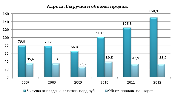 Впрочем, АЛРОСА следит за снижением производственных характеристик и делает активные упреждающие шаги по изменению ситуации в направлении улучшения. В частности, компания увеличила капиталовложения в новые производственные мощности почти вдвое — с 8,97 млрд руб. в 2011 году до 17,88 млрд руб. в 2012-м. При этом общие капзатраты выросли на 40% и составили 30 млрд руб.