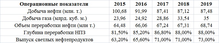 За последние четыре года добыча нефти у компании сократилась со 100,68 млн до 87,48 млн тонн, среднегодовой темп снижения составил 3,4%. Отрицательный результат вызван как естественным сокращением производства нефти на зрелых месторождениях в Западной Сибири, так и ограничениями в рамках соглашения ОПЕК+, которые начали действовать с 2017 года. Добыча газа у ЛУКОЙЛа с 2016-го увеличилась с 23,96 млрд до 35 млрд куб. м, в среднем повышаясь на 9,9% в год. Объем переработки нефти вырос с 64,48 млн до 68,74 млн тонн, или на 1,6% в год. Компания не только увеличила объем переработки, но и смогла нарастить эффективность производственных процессов. Так, глубина переработки НПЗ за четыре года увеличилась на 6,5 п.п., до 88%, а выход светлых нефтепродуктов вырос на 9,8 п.п., до 73%. НПЗ ЛУКОЙЛа одни из лучших в России.