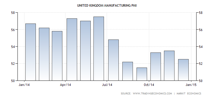 Британский фунт торгуется в непосредственной близости от психологически важной отметки 1,5 против американского доллара и в любой момент может уйти ниже. «Медведям» по GBP/USD нужен свежий драйвер для продолжения нисходящего движения, и первая неделя февраля вполне способна его предоставить. Релизы данных по деловой активности в производственном и строительном секторах, а также в сфере услуг просигнализируют о текущем состоянии экономики Британии внесут коррективы в позиции сторонников и противников повышения BoE ставки РЕПО в 2015-2016 годах.