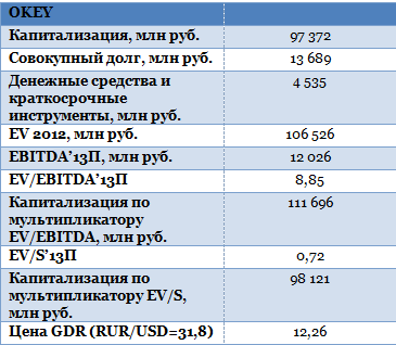 По прогнозам руководства О’Кей, в 2013 году выручка прибавит не более 25%, при этом из-за роста расходов в связи с открытием новых магазинов рентабельность EBITDA, скорее всего, сохранится на прежнем уровне 8%.