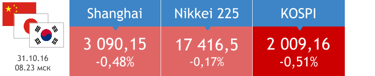 Цена на WTI 10 ноября опустилась на 2,3%, до $44,26, Brent подешевела на 2%, до $45,58. Вчерашняя статистика от EIA, кроме подтверждения роста добычи нефти в США, указала на ту же тенденцию в остальном мире: за октябрь производство увеличилось на 800 тыс баррелей в сутки. При текущих запасах это просто губительно для мирового баланса нефти. Сейчас нефть Brent пытается удержаться над отметкой $45, и какое-то время здесь возможна консолидация, однако лично я не стала бы продавать сейчас опционы пут на этом рынке, так как риск дальнейшего снижения весьма велик.