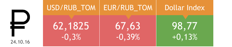 Индекс доллара накануне поднялся на 0,24%, евро снизился на 0,37%. Рубль существенно подешевел по отношению к обеим основным валютам. Ставка по однодневным кредитам MosPrime выросла на 8 б.п., до 10,19%. Пара USD/RUB вернулась к сентябрьским уровням. На мой взгляд, это прямой результат приближения к нулевой вероятности для ОПЕК реализовать алжирские договоренности. Без стабильной нефти нет стабильного рубля. В ближайшей перспективе наиболее вероятный коридор для пары USD/RUB — 65-66 руб.
