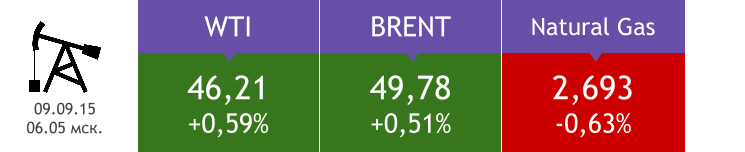 Котировки нефти марки WTI к концу торгов 14 сентября укрепились на 1,34%, до $44,59 за баррель, Brent подорожала на 0,56%, до $46,63. Сегодня Штаты опубликуют еженедельный отчет о запасах нефти (прогноз: рост на 1,173 млн баррелей после 2,57 млн неделей ранее) и нефтепродуктов (прогноз: снижение на 0,021 млн баррелей после роста на 0,384 млн неделей ранее). Краткосрочно рынок нефти также ожидает решения ФРС. Повышение ставки повлечет за собой укрепление доллара, что негативно для цен на углеводородное сырье.