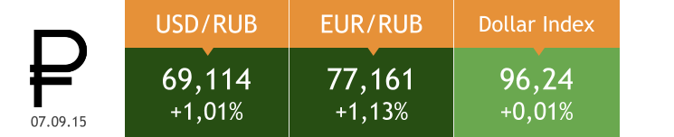 Индекс доллара вырос на 0,44%, евро снизился на 0,37%. Рубль укрепился по отношению к обеим валютам. Процентная ставка по однодневным кредитам MosPrime на 15 сентября составила 11,65%, увеличившись на 0,17 б.п. с предыдущего дня, что означает продолжение тенденции к сокращению объема рублевой ликвидности на межбанковском рынке. Ближайшую перспективу рубля определят итоги заседания ФРС. В случае повышения ставки по американским федеральным фондам возможен взлет котировок пары USD/RUB до 70 руб. Однако в целом национальная валюта подает признаки укрепления.