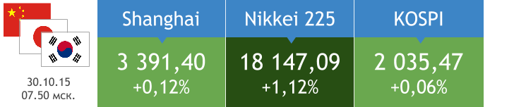 Положительное сальдо торгового баланса Японии в октябре составило 111,5 млрд иен против ожидаемого пассива 292,0 млрд иен. Чистые вложения в японские акции выросли до 327,9 млрд иен после притока 170,4 млрд иен неделей ранее. Сегодня завершается заседание Банка Японии, которое стартовало в среду. Инвесторы не ожидают изменения японским ЦБ объемов стимулирования экономики по итогам заседания. Торги 19 ноября на площадках АТР открылись преимущественно ростом.