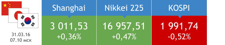 Положительное сальдо торгового баланса Китая в марте составило $29,857 млрд против ожидаемых $30,85 млрд. При этом объем экспорта в марте вырос на 11,5% г/г, а импорт снизился на 13,8% г/г при прогнозе роста на 2,5% и снижения на 10,2% соответственно. На биржах Азиатско-Тихоокеанского региона сегодня преобладают покупки.