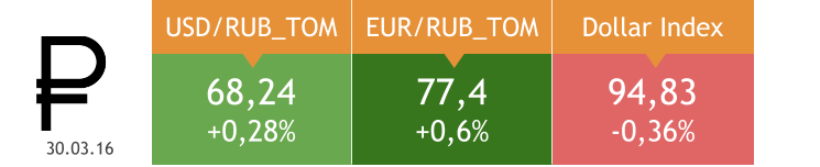 Индекс доллара накануне поднялся на незначительные 0,003%, евро снизился на 0,14%. Рубль укрепился по отношению к обеим ведущим валютам на фоне роста нефтяных котировок. Процентная ставка по однодневным кредитам MosPrime поднялась с предыдущего дня на 2 б.п., до 10,98%. Общий объем заключенных сделок по рублевому аукциону РЕПО на семь дней составил 250 млрд руб. при спросе 457,157 млрд.