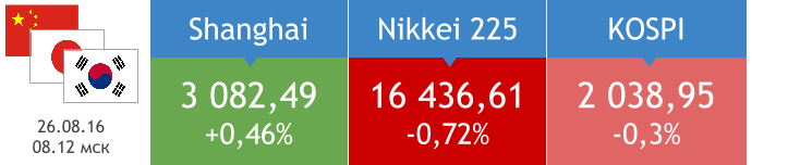 Индекс деловой активности в промышленности Китая в сентябре составил 50,1 п. после 50 п. месяцем ранее. Индекс промышленного производства Японии в августе вырос на 1,5% м/м при прогнозе 0,5% м/м, индекс потребительских цен снизился на 0,5% м/м против ожидаемого снижения на 0,4% м/м. Уровень безработицы за тот же период составил 3,1% после 3% в июле. На биржевых площадках Азиатско-Тихоокеанского региона сегодня преобладают продажи.