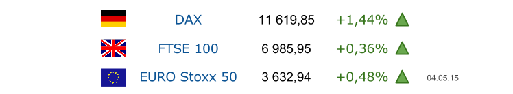 Фондовые биржи Европы завершили торги 4 мая ростом на фоне сильной статистики. Так, индекс производственного сектора еврозоны в апреле составил 52 п., что на 0,1 п. выше прогноза, а апрельский индекс деловой активности в промышленности Германии достиг 52,1 п., тогда как ожидалось значение 51,9 п.