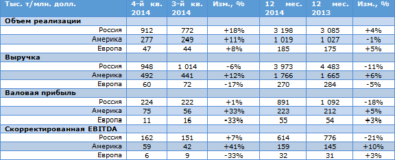 Уралкалий опубликовал финансовую отчетность по МСФО за 2014 год. По данным этой отчетности, продажи калия у компании выросли на 24%, до 12,1 млн тонн. Внутренняя реализация стагнировала на уровне в 1,9 млн тонн, зато объем экспорта поднялся на 30%. В результате этого доля Уралкалия на глобальном рынке выросла с 18,3% до 19,8%. Мировой спрос на калий составил рекордные 62 млн тонн. При этом средняя цена экспорта этой продукции снизилась на 13% на фоне избыточного предложения. С учетом повышения объема продаж, выручка компании выросла на 7%, достигнув $3 559 млн.